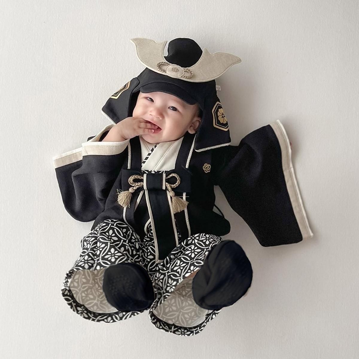 一枚着るだけで簡単に出来上がりますので、初節句、お食い始め、ハーフバースディなどのベビー和風コスチュームとして、とっても便利♪