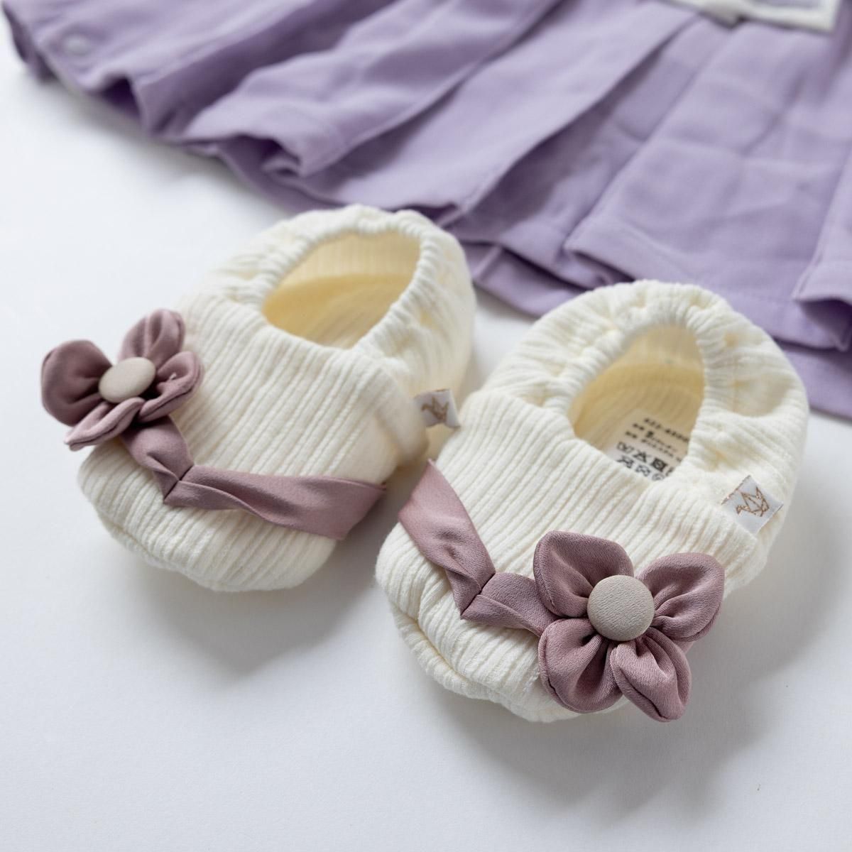 布製ヘアバンドと鼻緒デザインのブーティーもセット