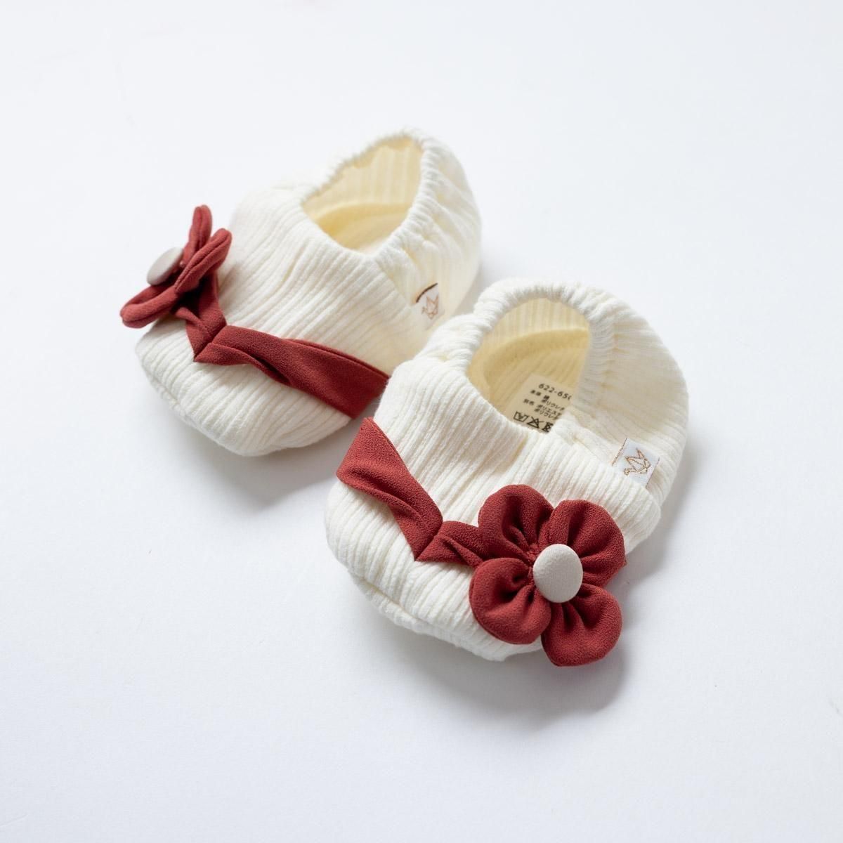 布製ヘアバンドと鼻緒デザインのブーティーもセット
